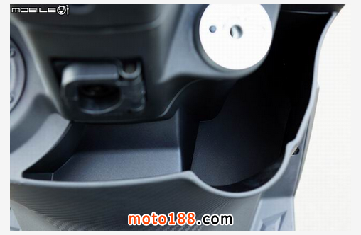 中央置物箱與鎖頭部分,左方的油箱蓋采用新的 SANYANG 商標(biāo),舍棄以往 SYM 的商標(biāo),中央置物空間有特別針對大體積保特瓶進(jìn)行設(shè)計(jì)。