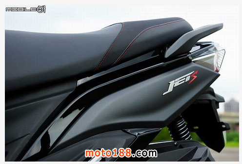 JET S 的座墊部分,采用大面積的座墊,雙材質(zhì)縫紉與紅線滾邊,除了讓前座能夠坐的舒適外,后座也有特別減低六度傾斜角,中長途騎乘時(shí)也能明顯感到差異。
