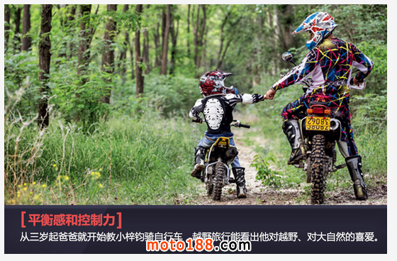 核心提示: 有種老爸愛騎摩托車,有種孩子從小看著老爸的摩托車長大,但似乎我們很難將越野摩托車和六七歲的小朋友聯系在一起。可就是有