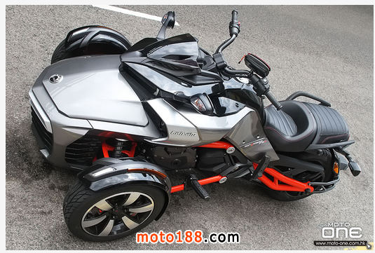 近年出現(xiàn)另類發(fā)展 ---三輪電單車,無論前三角又或后三角設(shè)計(jì),駕駛?cè)嗠妴诬嚨耐ǔJ亲非罅眍愸{駛感受的騎仕,尤其豪華路線的CAN-AM SPYDER,這車廠專攻豪華三輪電單車,采后三角設(shè)計(jì)路線,即前2輪轉(zhuǎn)向,后輪驅(qū)動(dòng)。繼廠方一路推出的ROTAX 998c.c. V2引擎的SPYDER RS-S系列后,2015年推出了最新款的ROTAX 1,330c.c.并列三汽缸的CAN-AM SPYDER F3-S,同樣水冷式引擎,當(dāng)然還有電子燃油噴注系統(tǒng)與流行的電子油門,且看她的還有其他的進(jìn)化與改良。