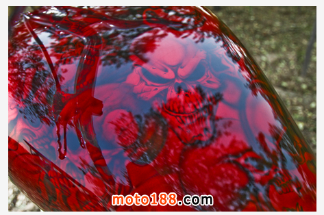 與紅底色交錯在一起的骷髏頭像,增強了車身的立體感