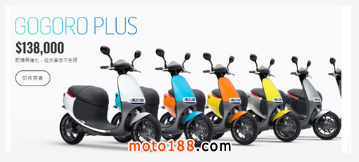 另外,新亮相的 Gogoro Plus 是 Gogoro 的升級版本,擁有多項配備升級:增加輔助剎車燈、剎車油量檢視燈、阻尼可調式后避震器、熏鈦灰特殊車架、銀灰色鋁合金輪圈、黑造型風鏡,以及白、灰、銀、藍、橘、黃六種車色選擇,價格則升到 13.8 萬元臺幣(約 2.8 萬元人民幣)。