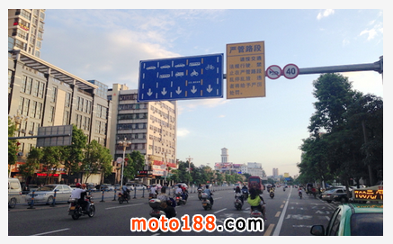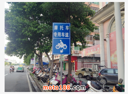 其他連接三大主干道的道路上,也增設(shè)了摩托車指示標(biāo)志,豎起了“摩托車專用車道”的指示牌。