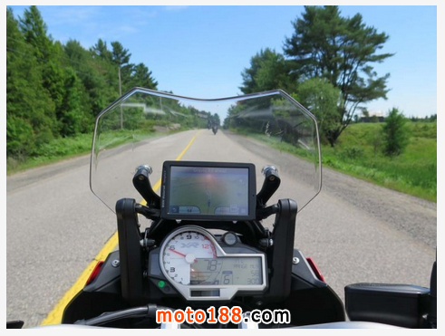 在非鋪裝路面上才是XR真正的用武之地,相比S1000R更長(zhǎng)的懸掛行程和軸距,XR在顛簸路面的行駛依舊非常穩(wěn)定,當(dāng)然這套電子懸掛系統(tǒng)功不可沒(méi);此外更寬的車把也讓駕駛者的操控更加輕松。前風(fēng)擋擁有兩個(gè)可調(diào)的位置,并且不需要工具;右側(cè)有個(gè)12V的電源接口,這個(gè)配置現(xiàn)在是非常有用的。