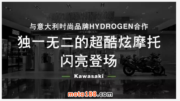 核心提示: 運(yùn)動(dòng)型摩托的旗艦至尊Ninjia ZX-14R,與意大利奢侈品牌HYDROGEN合作,在上海新世界大丸百貨門店閃亮登場。酷炫的車身,行云流