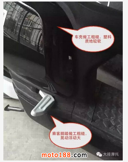 車殼塑料做工粗糙:尤其是座椅下方、電池蓋、乘客腳踏,縫隙太大