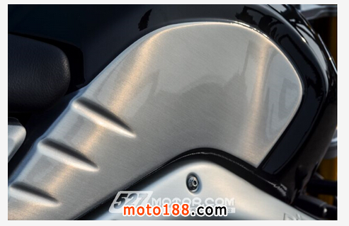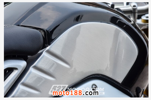造型獨(dú)特的油箱是全車的一大亮點(diǎn),該油箱采用鋁合金一體成型打造而成,而且整個(gè)漆面完全采用手工繪制,特別是腿部經(jīng)常夾持的發(fā)絲紋部分更是費(fèi)盡心思。整個(gè)油箱先由德國制造成型,再將其送到意大利,由工匠將發(fā)絲漆面紋處理完成,最后再運(yùn)回德國進(jìn)行手繪描邊上色等工藝,整個(gè)過程全部由工匠手工完成,做工考究、質(zhì)感上乘。