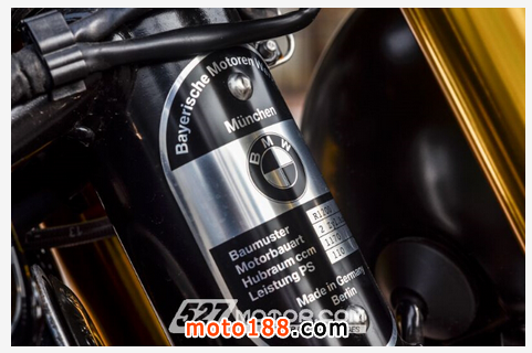 此外,R nineT還有很多細(xì)節(jié)值得玩味。比如,經(jīng)典復(fù)古的圓形前大燈依舊帶著老式BMW黑白 logo,格外亮眼的、從S1000 RR上移植而來的金黃色倒立式前叉,以及車把、前擋泥板、座墊下方等多處交相輝映的鋁合金部件等等都呈現(xiàn)出一種精致、純粹的特質(zhì)。