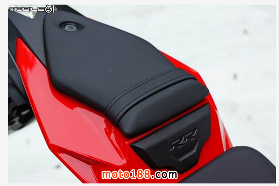 在前座后方,也有一塊方便騎士趴車加速時,能讓臀部舒適些的靠墊,上方還印有 RR 字樣,可惜 RR 不是熱血的紅色字樣,但相信有愛的車主們絕對有方法能解決這個問題的100分