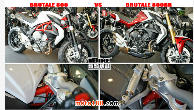 MV的轉向釘把及專用釘把碼是Brutale 800 RR標準裝備,Brutale 800沒有。如要另行購買,索價超過港幣六千元。