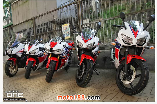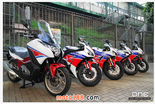 眾所周知,HONDA有兩大長青的車身拉花,分別為良好合作伙伴的RESPOL機(jī)油及HRC廠花。歷年來,兩大拉花以成為HONDA眾多車系的車身配色,廣受車迷酷愛與歡迎。最近,香港HONDA旺角陳列室難得集結(jié)HRC廠花大軍,包括NC750 INTEGRA S、CBR1000RR、CBR600RR、CBR500R、CBR300R等五款,相同的經(jīng)典紅白藍(lán)HRC拉花與300c.c.至1000c.c.不同排氣量的級別車系結(jié)合,如此有趣難得的畫面,當(dāng)然要與眾分享。