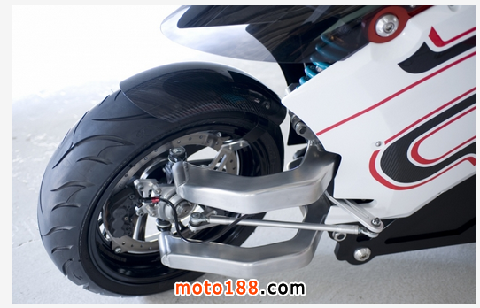 zecOO電動摩托車外形酷炫拉風,采用的是針對電動摩托車需要而設計的VTF雙立式車架(Vertical Twin frame)。zecOO 由全鋁合金車架、碳纖維外殼構成,重280公斤,采用單側雙搖臂輪轂轉向系統,使騎行者可以更穩定得操控摩托車。