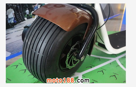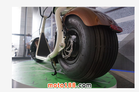 Citycoco的與眾不同的外觀主要表現在兩大方面:首先是兩個超級大的車胎,直徑為18英寸,寬度高達9.5英寸,停放的時候甚至不需要打開車梯就能屹立不倒,要知道一般的汽車輪胎也不過這個尺寸,將它用在這款“類摩托”的產品身上是有多么霸氣。