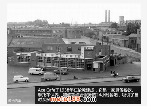 Ace Cafe于1938年建成,是一家位于倫敦近郊的餐吧,它除了具備餐飲服務外,還提供摩托車的保養和加油。不過,在它開幕的前一年,發生在世界另一端的“盧溝橋事變”,卻已經揭開了戰爭的序幕。二戰中,Ace Cafe被轟炸倫敦的德軍轟炸機摧毀,直到1949年時才被重建。但也是從這一刻起,Ace Cafe開啟了屬于它的傳奇故事。