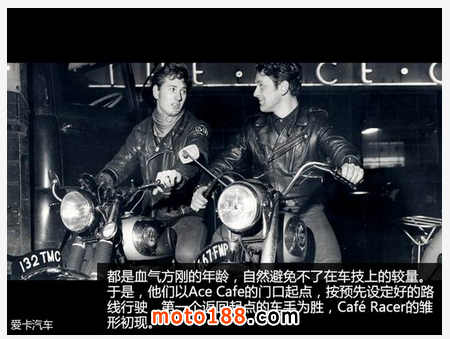 戰后的英國百廢待興,恰巧這代年輕人的思想極為叛逆,因此令摩托車、搖滾樂等小眾文化如雨后春筍般涌現。著名的The Beatles,以及60年代中期的The who、The kinks等樂隊,就是最為杰出的代表。而Ace Cafe憑借它的獨有特點,吸引了一群愛好機車和搖滾樂的年輕人,當然,在這之中也不乏退伍的士兵,他們在戰爭中積累的機械知識,也為日后Café Racer改裝風格的興起,做足了準備。