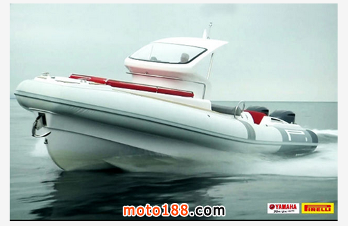 Pirelli PZero 1100 Cabin是一款適宜與短距快速航程的運動型橡皮艇。船體和甲板的設計秉承著輕型、穩(wěn)固和耐用的原則。而管道則增加了浮力儲備,并更好地控制傾斜度。雖然船的外觀圓潤而充滿動感,但在甲板下的走廊和洗手間仍能有足夠空間讓人直立,而駕駛艙更能容納6人。在管道上和船體中央,運用了倍耐力PZero輪胎的元素。儀表盤能絕佳監(jiān)測所有設備。正如摩托車一樣,我們需要挖掘出其裝備的所有技術。倍耐力PZero 1100 Cabin的排水量為4169立方厘米,可以搭載雙外置雅馬哈F300 V6 24門300馬力發(fā)動機。根據(jù)其船身268千克的重量,功率重量比為1.1千克每馬力。