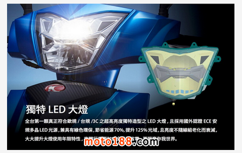 其次,LED大燈也是一個新的嘗試,目前國產速克達除了AEON的ES 150之外,新G6也跟進了LED大燈系統。