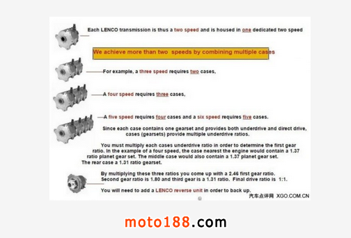 為了把手動(dòng)換擋的時(shí)機(jī)控制和換擋速度與自動(dòng)變速箱的方便結(jié)合在一起,山姆們開發(fā)了Lenco競(jìng)賽變速箱。這種變速箱采用檔桿取代自動(dòng)變速箱里面的液壓換擋結(jié)構(gòu),車手不用額外控制離合器踏板,只需要拉動(dòng)檔桿即完成換擋動(dòng)作。這樣既避免了手動(dòng)變速箱復(fù)雜的離合器操作,又解決了傳統(tǒng)自動(dòng)變速箱動(dòng)力的損耗。