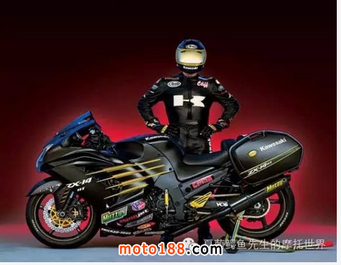 來一輛輪上馬力250hp,裝配氮氣套件,百公里加速2秒,5檔就能拉到320千米/小時的川崎ZX-14R(六眼魔神)怎么樣?你可能會說我瘋了,但60歲美國老人Cliff Randall的環美“旅行車”就是這樣的瘋狂。