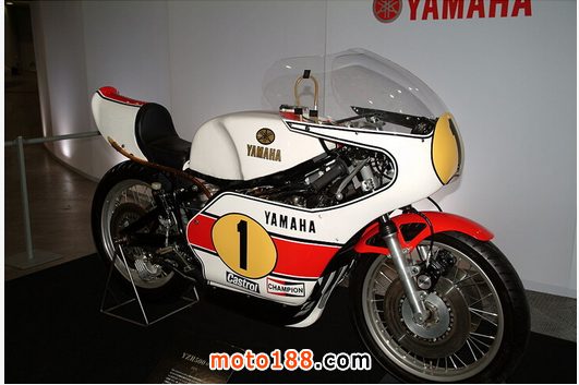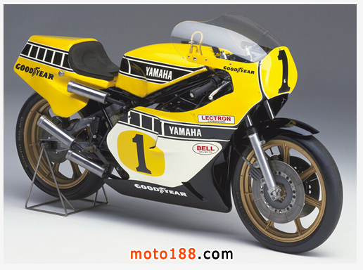 1973年的YZR 500,看得出保留了1960年搭配,以白色背景搭配紅線條,而此涂裝則被廣泛的應用到各車種