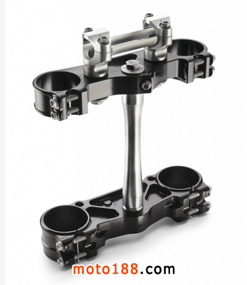 陽極處理的黑色電腦切割CNC上下"眼鏡"結(jié)合避震膠,減少行車過程中的震動,從而提高舒適性,新的"眼鏡"設(shè)計甚至叉腳也利用,成功將夾頭叉的力度也分佈於其中,可調(diào)節(jié)的把手位置亦帶來操控的變異。