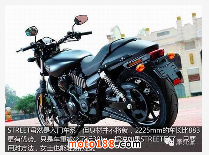 我懷疑他們造車的理念是:按照老祖宗留下的配方,用最好的材料,前輩的教誨,建造出一部摩托車,至于這部車能發出多少馬力,是不是好騎,甚至踩下剎車能不能及時停下來,都是不重要的。STREET似乎沒了這些固執,是最容易上手的一部哈雷。離合器和油門,從行程到響應,都是很好適應的,用某位資深哈雷車主的話:“和騎一部日本車沒啥區別”。