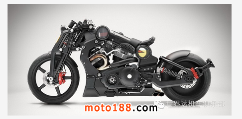 該車采用一副風冷(帶油冷裝置)V 型 56 度雙汽缸的發動機,排汽量 132 立方英寸(2,163 cc),最大馬力輸出達到 200 匹。發動機與整個車身的主體材料是以美標 6061 航空鋁、再以 CNC 數控加工制作而成,外觀造型采用了一個極為激進的裸露金屬肌肉設計,以小量的碳纖組件作為襯托,而讓人過目不忘的還有那巨大的 240/45ZR-17 后輪胎。
