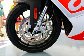 阿普利亞GPR制動(dòng)系統(tǒng)配置頗高,前制動(dòng)非常敏感(敏感得有點(diǎn)神經(jīng)質(zhì))再加上前減震偏軟的緣故,很容易產(chǎn)生“磕頭”現(xiàn)象,如果拋除減震原因的話,總體制動(dòng)表現(xiàn)是相當(dāng)不錯(cuò)的。