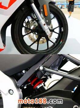 純“跑”格化設(shè)計(jì),而且不像以往輕量級(jí)跑車外形來得那么“單薄”。車架、后搖臂、倒置前減震加輻射式卡鉗不熟悉的人一定不會(huì)相信阿普利亞GPR的排氣量只有125cc。就連排氣都是為加大車身左右傾角而生的埋入式設(shè)計(jì)。