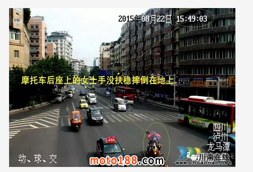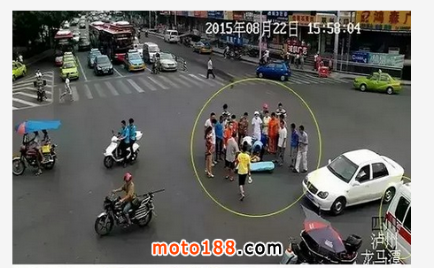8月22日下午15時(shí)49分,在蓮花池59紅綠燈路口處,又發(fā)生了一起血的教訓(xùn)。一輛二輪摩托車在馬路上往前行駛,后座乘有一位女士手里抱著一個(gè)箱子,由于該路段車流大、人也多,二輪摩托車本身穩(wěn)定性較差,難免晃動(dòng)穿梭。此時(shí),這位女士因?yàn)楸в邢渥邮譀]扶穩(wěn),便從后座摔倒在地。事故發(fā)生時(shí),摩托車后座上的這位女士并未佩戴安全頭盔,對(duì)頭部沒有進(jìn)行任何保護(hù),在摔倒時(shí)不幸撞擊到頭部,導(dǎo)致頭部嚴(yán)重受傷無法動(dòng)彈。所幸的是,后面車輛行駛時(shí)保持了車距,并未從女士身體上碾壓過去,否則后果不堪設(shè)想,當(dāng)120急救車到達(dá)現(xiàn)場時(shí),地上已血流成河。
