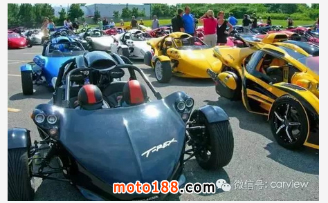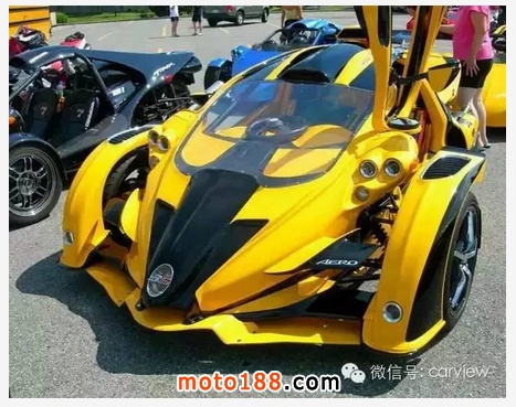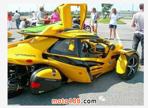 世界上最快的三輪跑車非 T-Rex 莫屬,性能絕對不比超跑要差。來自加拿大的Campagna T-Rex采用了鋼管構(gòu)造的車身,動力搭載一臺1.2升的四缸DOHC發(fā)動機(jī)通過6檔順序變速箱為它提供動力,最大輸出的最高馬力是197匹,前懸掛采用的是不等長三叉臂+防傾桿以及防傾桿可調(diào)節(jié)阻尼器+螺旋彈簧的設(shè)計;后懸掛則采用拖拽臂以及可調(diào)節(jié)阻尼器+螺旋彈簧的設(shè)計。整車長寬高分別為3500m、1981mm、1067mm,軸距2286mm,車重僅410kg,油箱容量28升。性能方面,0-100km/h僅需3.9秒,最高時速達(dá)241公里,Campagna T-Rex的車身材料是玻璃纖維加強(qiáng)塑料。