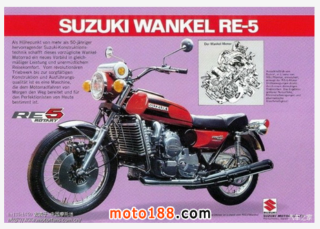 鈴木RE5啟用在當(dāng)時(shí)被形容為“革命性”的轉(zhuǎn)子發(fā)動(dòng)機(jī),是鈴木在七十年代的一次賭博,但很不幸他失敗了。