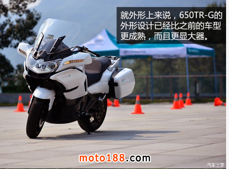 其實(shí)從車身外觀看來,650TR-G的外形已經(jīng)與650TR有很大的不同,整輛車看起來似乎是大了一圈,變得更壯碩了,而且細(xì)節(jié)的設(shè)計(jì)也比之前更成熟,看起來甚至有些像寶馬R 1200RT或者是K 1600GTL。整體而言,它的外觀比起以前的任何一款產(chǎn)品顯得更有層次感,算得上是國產(chǎn)車中的佳作。