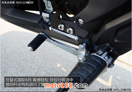如果是中低速駕駛狀態,發動機低扭性能非常好,1-3擋往復,并不需要擰太多油門即可輕松應付,抵擋低速狀態下發動機震動有些大,有時候震動的甚至讓后視鏡都跟著“跳舞”。試駕日期是9月中旬,天氣還較熱,加寬的弧形水箱增強了發動機水冷系統的散熱能力,屁股感覺并不是有些車型那樣“火燒火燎”的。