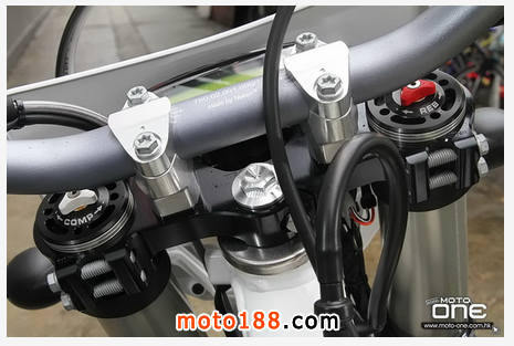 ●原裝車配備WP 48mm 4SC倒立前叉,采用流行的左右獨立調校,左為下壓,右為回彈,只須手動便可進行調校,非常方便。