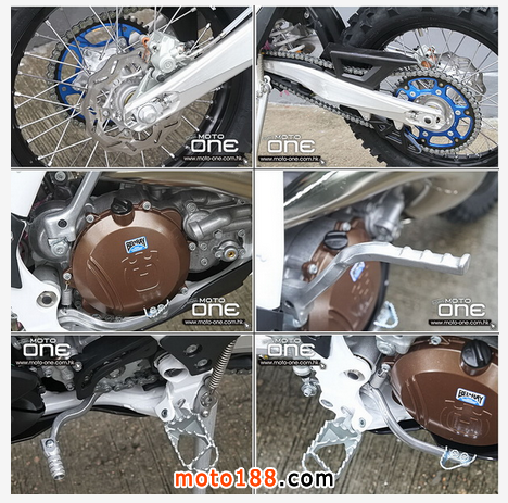 水冷式2沖程293.2c.c.單汽缸引擎,電撻與腳撻兼備六前速波箱,WP前後懸掛維持不變,油壓式離合器剎車系統均與TE250相通,座高維持960mm,就這麼看上去,兩者基本上并不存在差異,只各自有本身的個性。