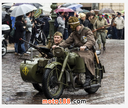大國博弈從來都是實(shí)力的較量,只有強(qiáng)大的軍事實(shí)力才是最好的保障。亂世出英雄,早已為應(yīng)對(duì)戰(zhàn)爭而生的烏拉爾摩托車現(xiàn)在有了英雄用武之地。1942年10月25日,第一臺(tái)M-72投入戰(zhàn)場,隨后烏拉爾摩托車源源不斷地輸往軍隊(duì)——二戰(zhàn)期間共有9799輛M-72裝備于前蘇聯(lián)的偵察部隊(duì)和機(jī)械化部隊(duì)。曠日持久的戰(zhàn)爭終于逐步轉(zhuǎn)向正義的一方,隨著捷報(bào)一個(gè)接一個(gè)傳來,終于在1945年5月8日,德軍宣布無條件投降。在這場長達(dá)4年的衛(wèi)國戰(zhàn)爭,烏拉爾摩托車始終活躍在作戰(zhàn)前線,頻頻出入于槍林彈雨,幫助前蘇聯(lián)紅軍立下了赫赫戰(zhàn)功。