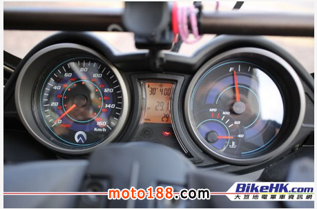 好了,來到大家最期待的一點,就是豪華裝備介紹!首先金屬藍色的車身是特別版獨有的,車輪配色的螺絲也是特別附送的。風鏡加添了強化桿,上面亦送上藍芽喇叭,為旅途添加音樂享受。而喇叭亦已連接至車底的USB充電插頭,省下自己后裝要收藏電線的麻煩。車尾可以找到兩支Ohlins帶樽的尾避震,行車就可以更舒適安全。