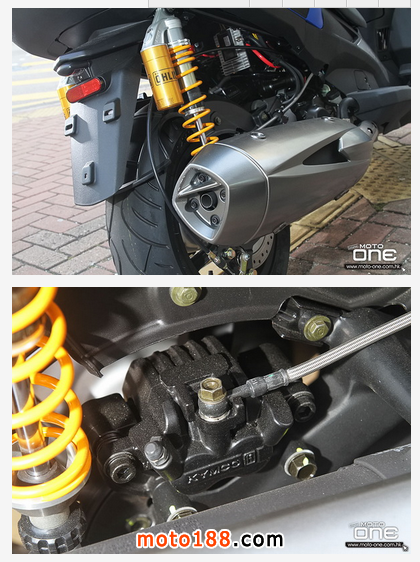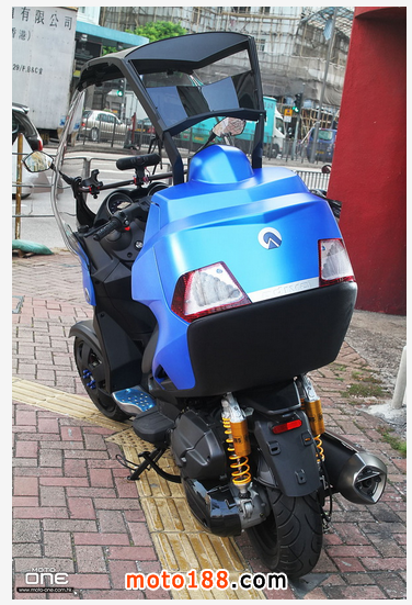 ●基於一對前輪框超過460mm輪距,因此無須配載頭盔駕駛,前是獨立220mm煞車碟,鋼煞車喉及雙活塞卡鉗,前後均是13寸輪框。