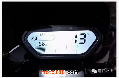 車充的時候,儀表變為充電顯示模式。右邊顯示電量,左邊則顯示充滿電還剩余的時間。電量還剩13%時充電,顯示還有5.6小時可以充滿。在6%的時候充電,用了正好6個小時充滿。