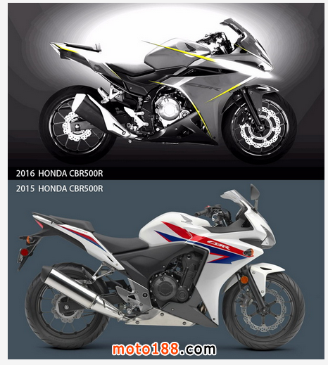 自從HONDA發布一張沒有車型的大包圍新車照片後(被推斷為新一代CBR250RR或CBR300RR),開始感覺到HONDA掌握市場的口味。而HONDA在美國舉行的AIMExpo車展前,發布了兩張只顯示新款CBR500R輪廓的照片(部份亞洲國家為CBR400R),相信是希望保持神秘感,可是經Photoshop調光後,新車外型清晰可見,新設計的更大面積包圍、新LED頭燈、新排氣管及新車尾等等,使車輛更有SUPERBIKE的味道,但相信引擎及車架沒有大改。又是那包話,進一步資料有待廠方公布。