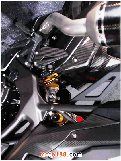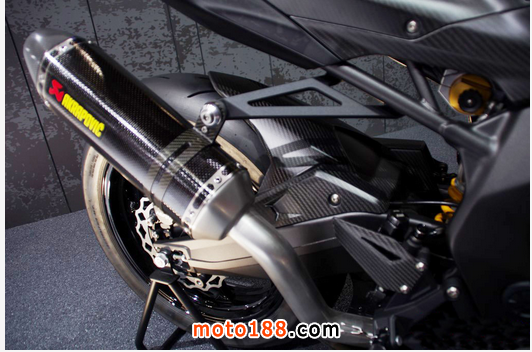 ●倒立前叉、菊花碟及改裝排氣管,還有多組碳維部件,相信車輛屬賽道版。