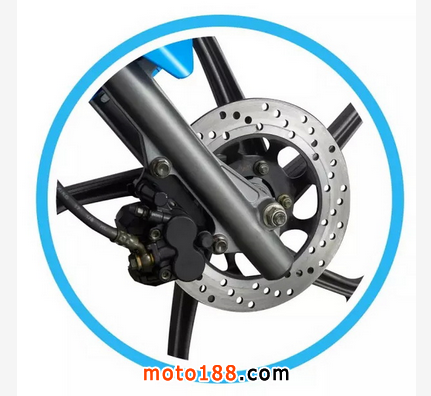 超大碟剎盤前制動:前剎是單向雙活塞油壓碟剎,規格Φ220mm,表面黑色,摩擦面未噴漆。后制動是鼓剎,規格為Φ110mm。