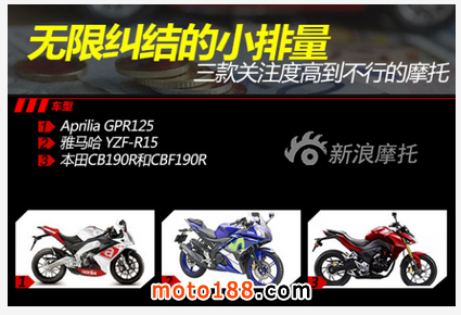 以款型分類的話這三款車真的很難放在一起做出評價,因為Aprilia GPR125是一款將125cc發揮到近乎極限的高比格仿賽車、雅馬哈R15是一款披著跑車外衣的高性能“街車”而本田190R則是一款高配置的純街車,三者單體性能不速又個性鮮明,高比格、高性能、高配置,三高碰撞各種糾結就差選車選到高血壓了。