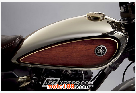 Resonator 125搭載125c.c.風冷四沖程發動機,而該車最大的亮點在于它與樂器制作相結合的設計。如新車油箱兩側采用了制作鋼琴用的原木;經過精心設計的油箱蓋則采用了制作銅管樂器的黃銅材質;排氣管和油箱蓋上繁復花紋的雕刻技術則是只有在銅管樂器上才會采用的。這些樂器材質和技術的運用使該車看起來既復古又時尚,而新車在車把處留有固定手機的位置,又為它添了幾分現代氣息。