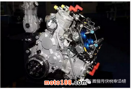 作為MMX 500 的心臟,這顆2T、V4、576cc 的引擎,采用了雙曲軸設計,能有效減低引擎所帶來的震動,當然作為現代的兩沖程引擎,供油系統也使用了電子噴射方式處理,離合器使用自家的SUTER Clutch。