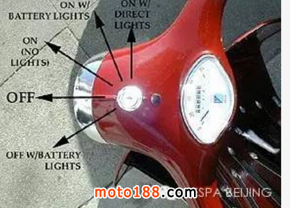 我很快發(fā)現(xiàn)這臺車的電路系統(tǒng)也有問題,就算電池充滿電,車不啟動(dòng)后,電池也很快就沒電了,我想這是因?yàn)辄c(diǎn)火開關(guān)有問題吧,從Scooter論壇上得到一些幫助后,我還更換了整流器和其他一些配件,還包括一個(gè)電池?cái)嚅_開關(guān),以保持電池不漏電。我沒有此車的電路資料,如何使用NOS開關(guān)是大問題,在我弟弟和試電筆的幫助下,我最終找出了開關(guān)各個(gè)方向的作用