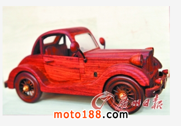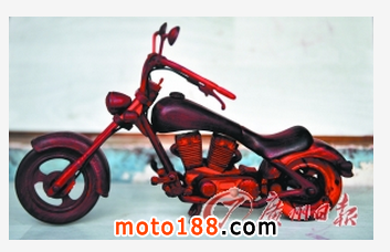這個車展沒有美女車模,只有車的制造者鄺伯在現場為街坊們作詳盡介紹。“這輛車用紫檀木制作,最為昂貴,而這部摩托車不要看用料少,其實花費的心思卻最多,因為有很多精細的部件。你看這個木制的鑰匙還能拔出來……”