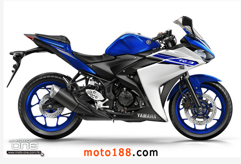 2015 YAMAHA YZF-R3,配備雙缸321cc引擎及42ps馬力輸出、ABS防鎖死剎車系統,一直受市場的歡迎,成為入門跑車熱門車款之一。2016 年,YZF-R3將會保留原有的裝備與規格。外觀上,2016 YZF-R3賽藍版的新拉花亦呼應同廠的YZF-R1、R6、R125,色彩與拉花格調一脈相連。另外,也會推出啞黑新色,在前后輪框加上紅線及車身包圍 少許的紅線點綴,與賽藍版不同的精采。