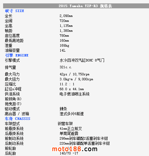 核心提示: 2015 YAMAHA YZF-R3,配備雙缸321cc引擎及42ps馬力輸出、ABS防鎖死剎車系統,一直受市場的歡迎,成為入門跑車熱門車款之一。2
